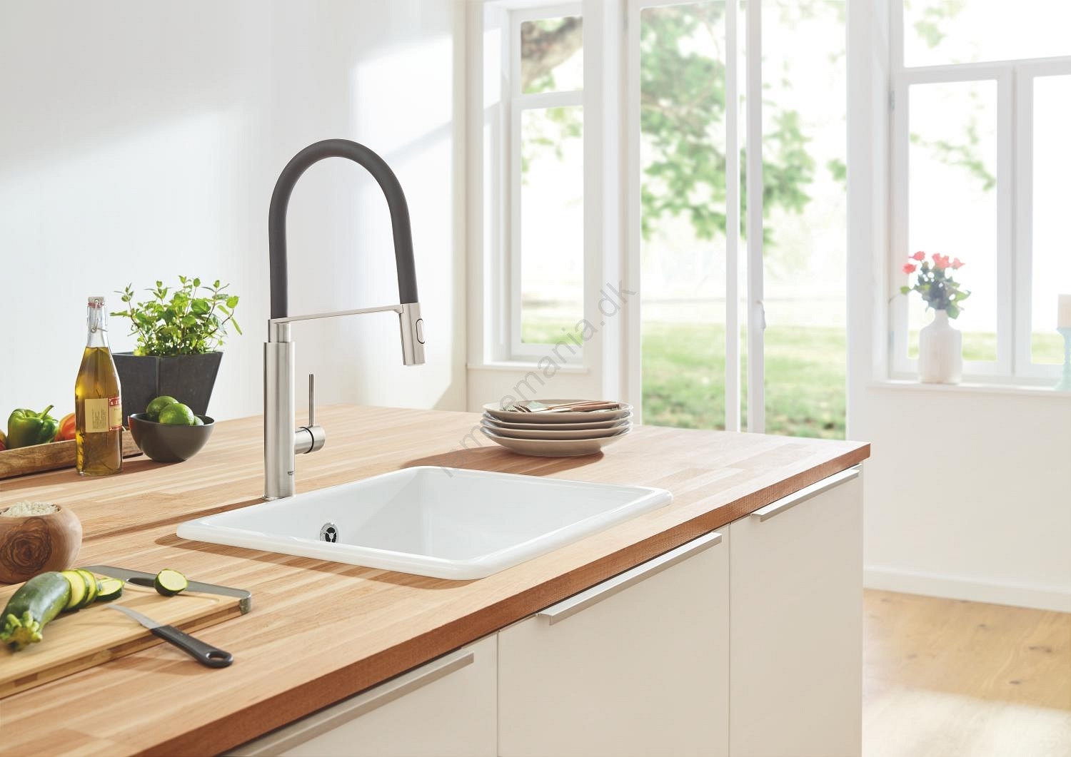 • Professionel bruser med fleksibel, hygiejnisk GROHFlexx-køkkenslange i santopren.
