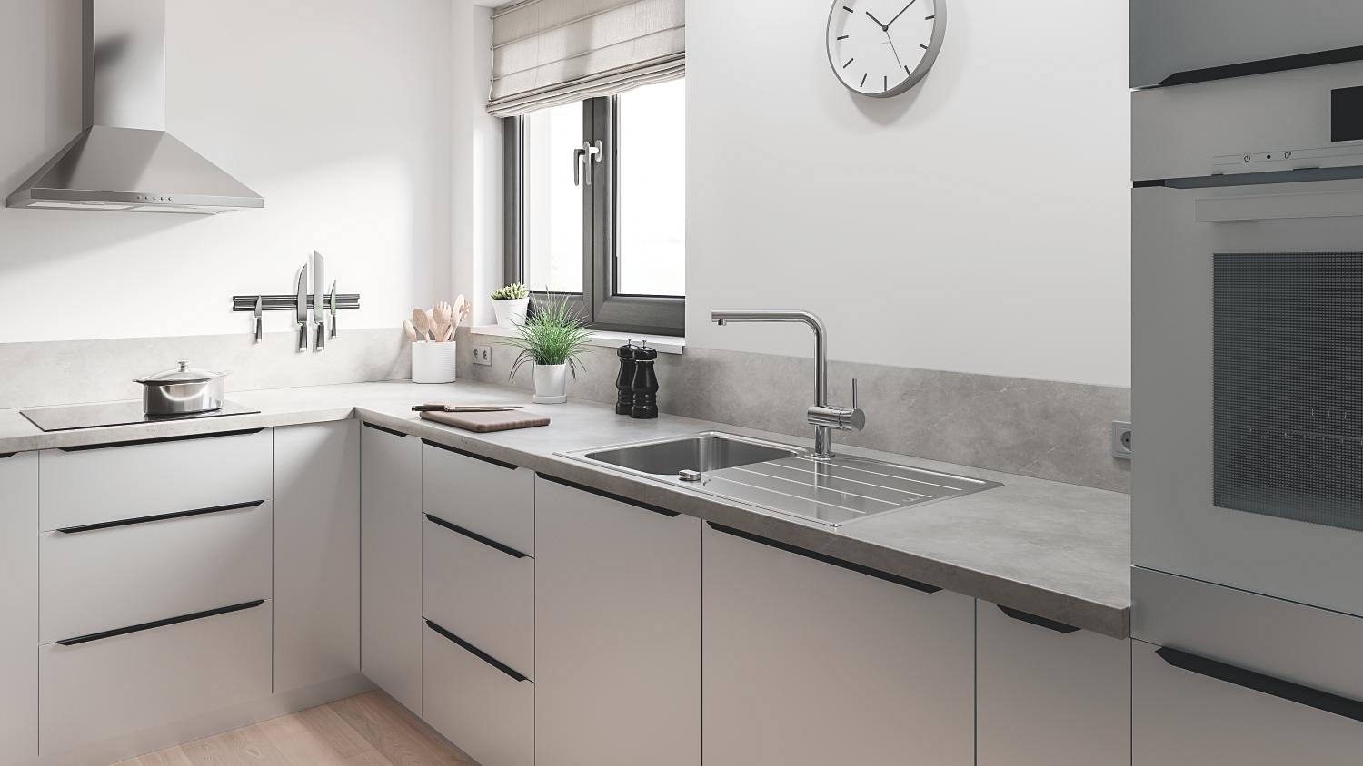 • Sæt med køkkenvask og armatur GROHE Minta – en komplet løsning til dit køkken.