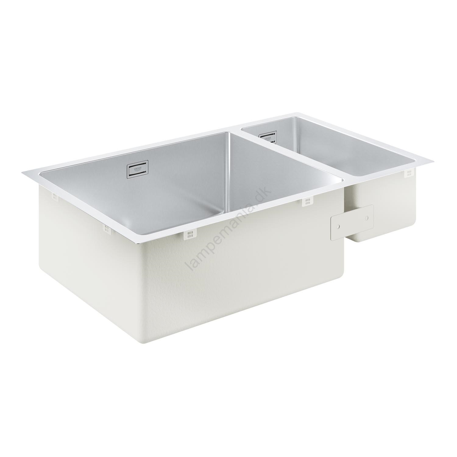 • Elegant køkkenvask i rustfrit stål GROHE K700U 80-S 76/45 med 1,5 skål til moderne køkkener.