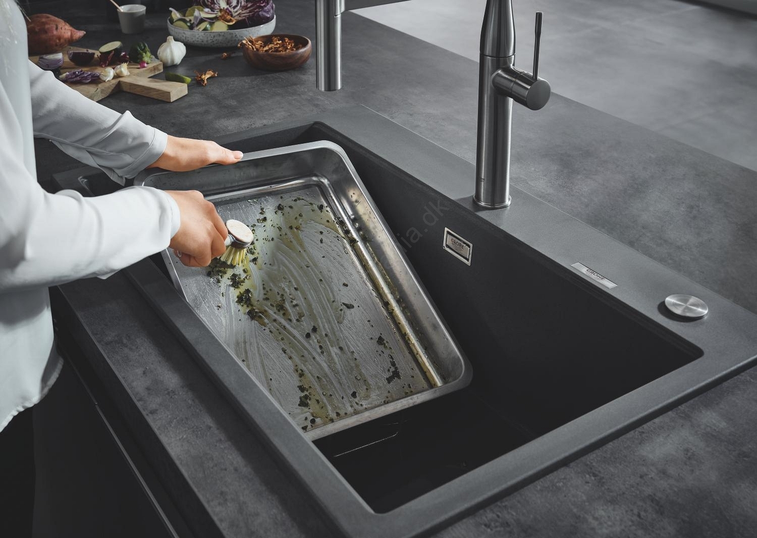 • Rummelig kompositvask GROHE K700 med målene 780 x 510 mm for maksimal komfort under køkkenarbejdet.
