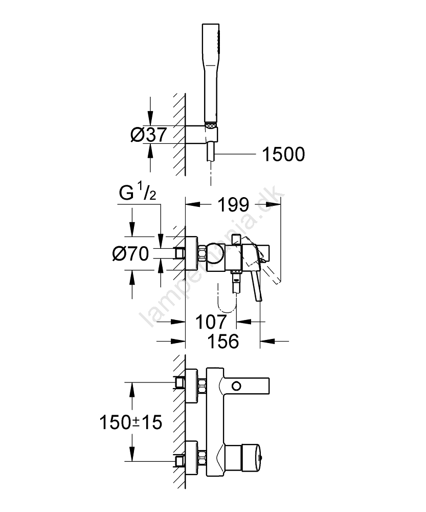 • Vægmonteret ét-grebs karbatteri med elegant GROHE StarLight kromfinish for langvarig glans.