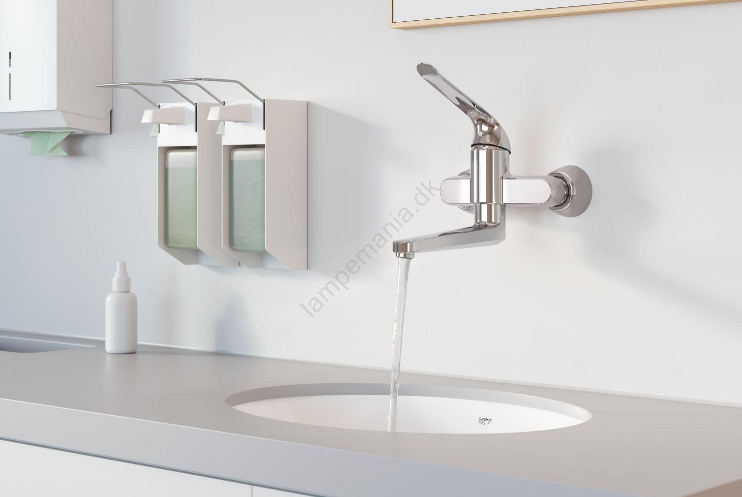 • Væghængt etgrebs håndvaskarmatur ideelt til sundheds- og plejeinstitutioner.