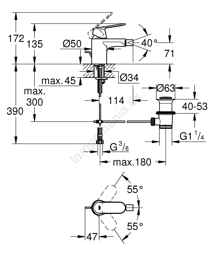 • GROHE FastFixation hurtigmonteringssystem med centreringsværktøj for hurtig og præcis installation.
