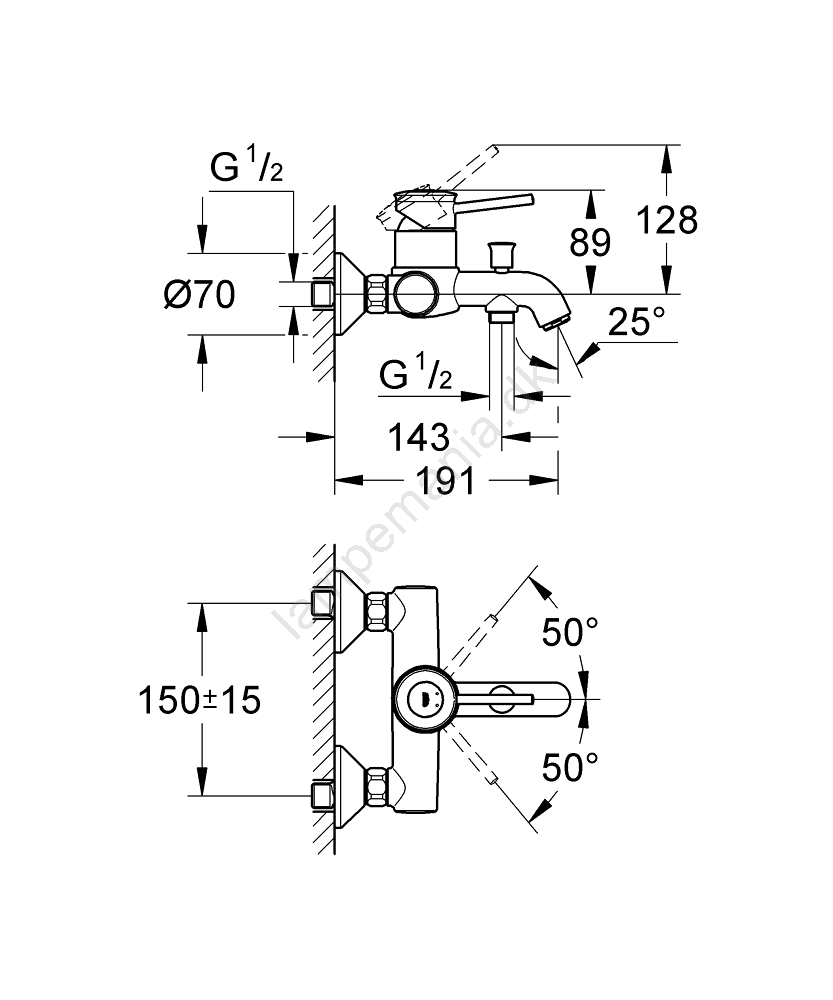 GROHE 32865000 - Badekarbatteri BAUCLASSIC DN 15 poleret krom