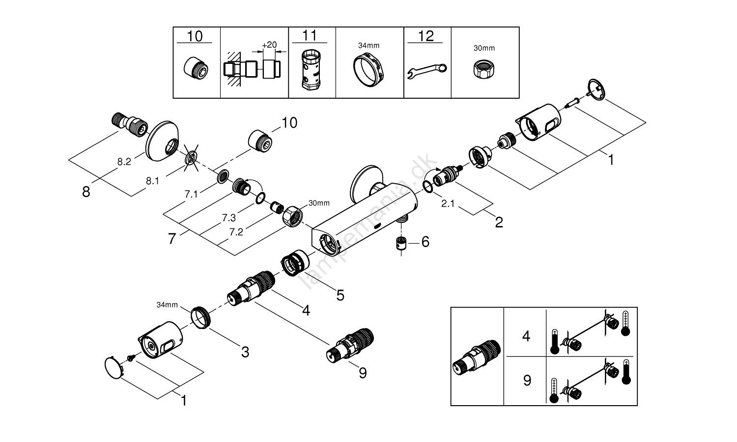• Valgfri GROHE SafeStop Plus temperaturbegrænser ved 43 °C for øget sikkerhed.