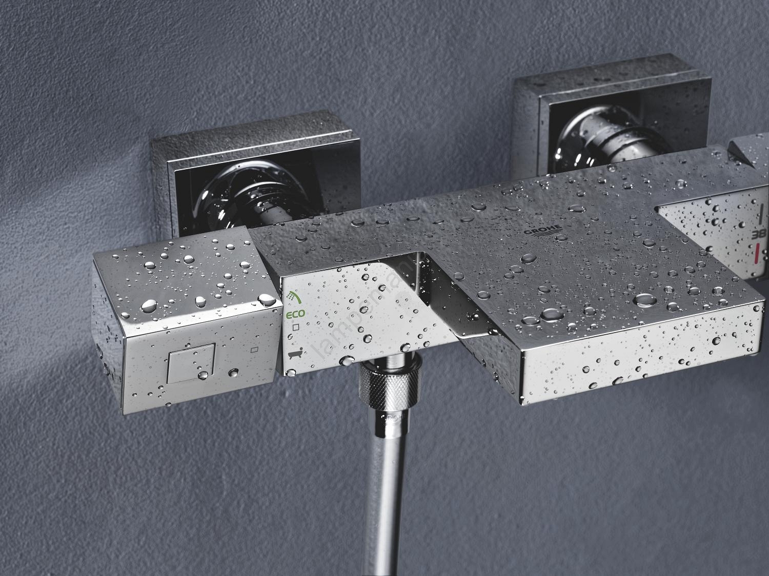 • Integreret spareknap GROHE EcoButton, der reducerer vandforbruget under brusebadet.