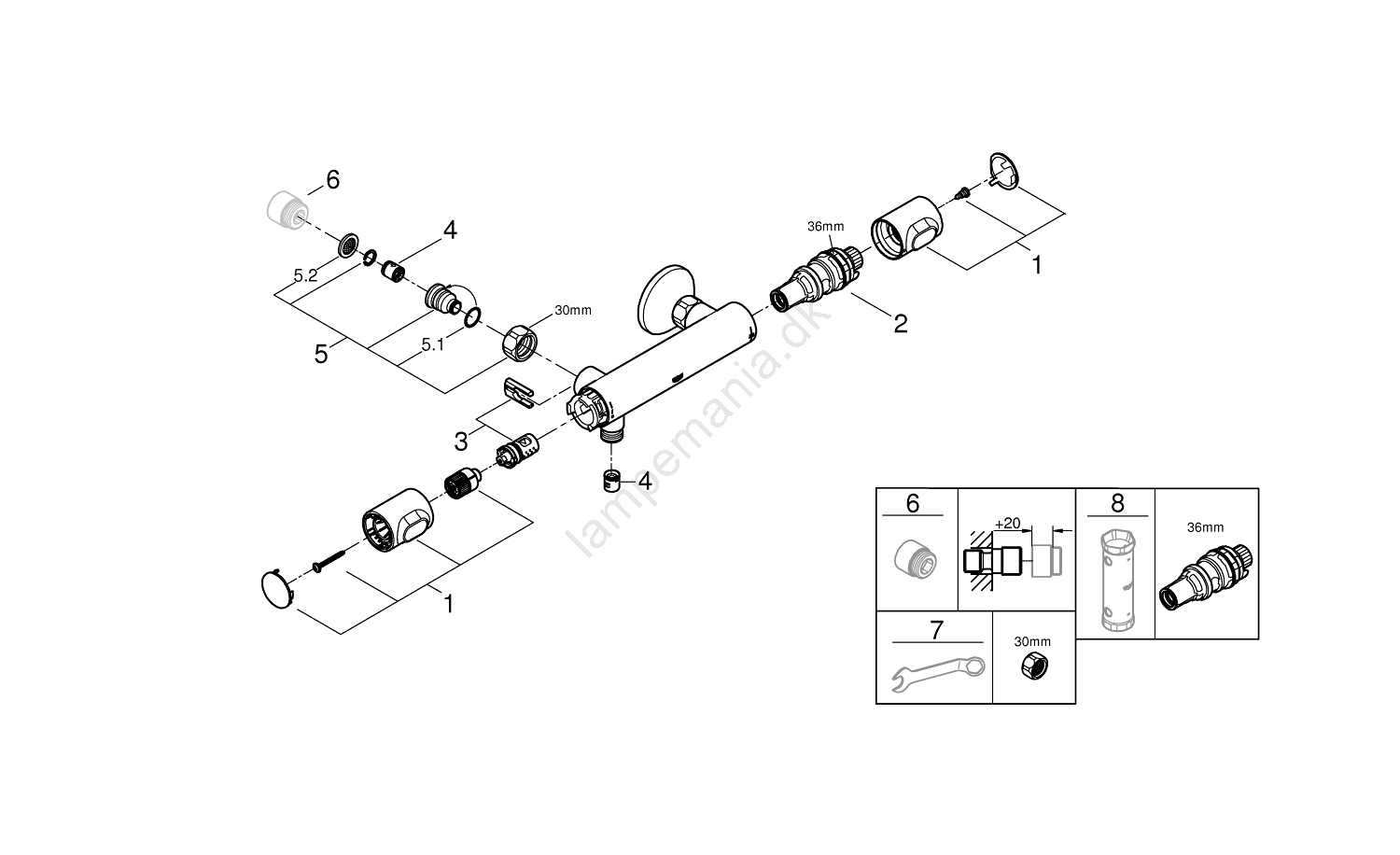 • Pakken inkluderer GROHE QuickSpanner til hurtig og nem installation uden behov for ekstra værktøj.