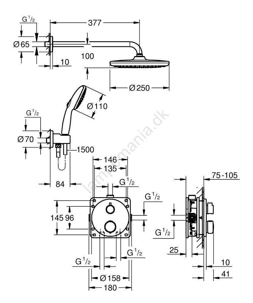 Badeværelse, Brusehaner, Brusehoveder, Brusesæt, Brusesæt, Grohe, Haner, Mærker, Skjulte haner, Termostathaner