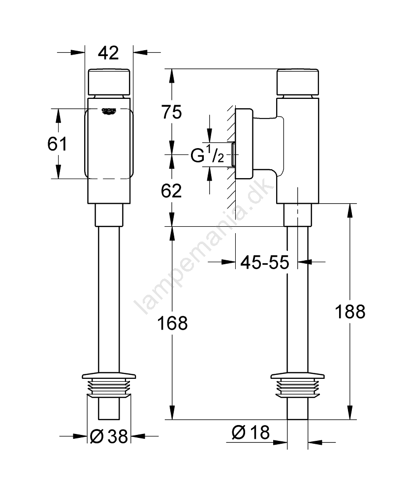 GROHE 37339000 - Spyleventil til urinal RONDO 12” blank krom