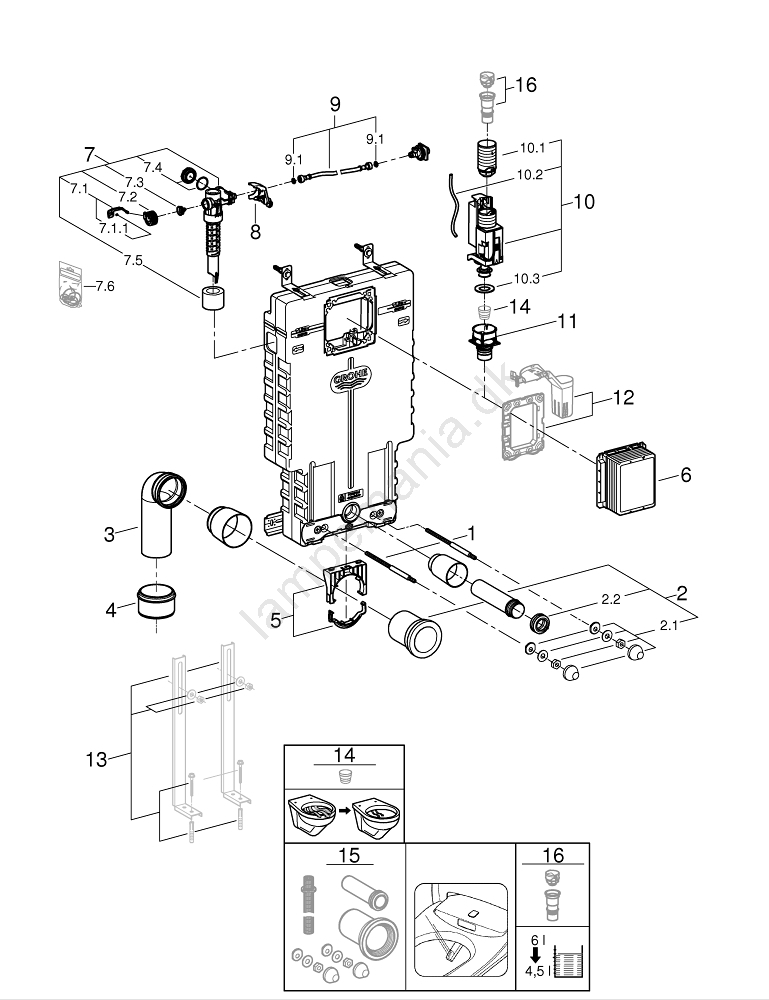 • To fastgørelsesbeslag til toilet med skrueafstand 180/230 mm for nem montering af keramik.