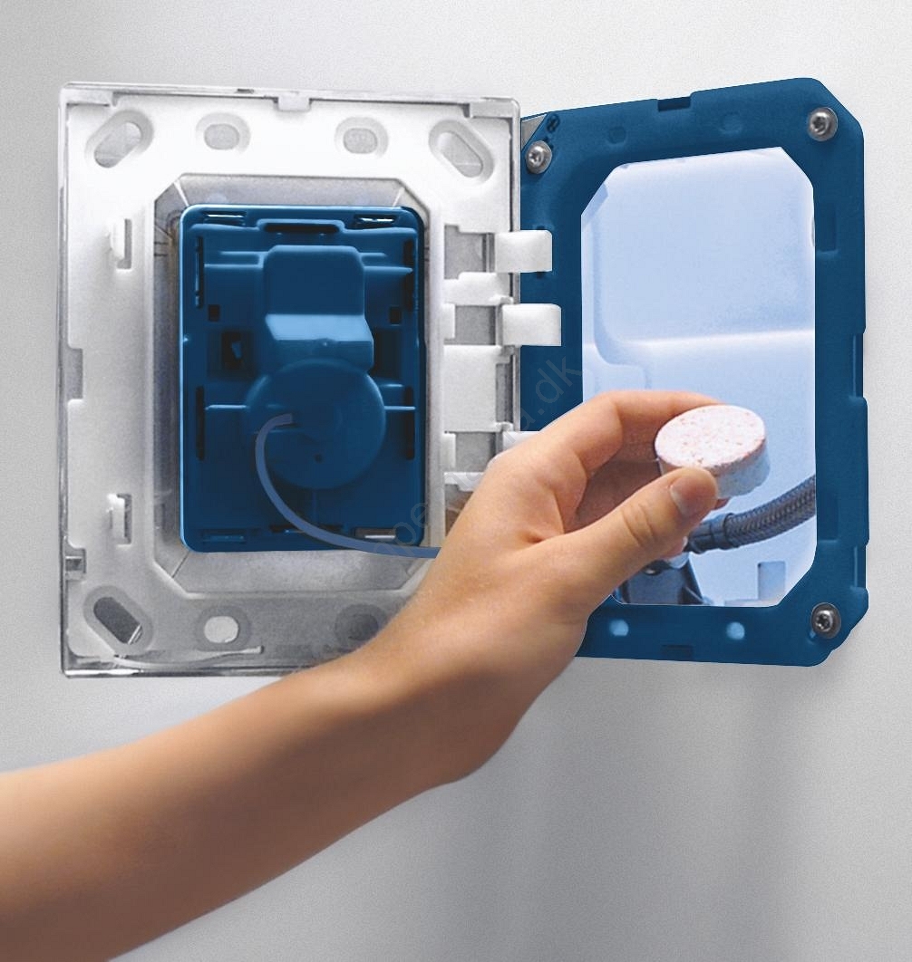 • Indeholder en beholder til tabletterne, hvilket sikrer jævn opløsning ved hver skylning.