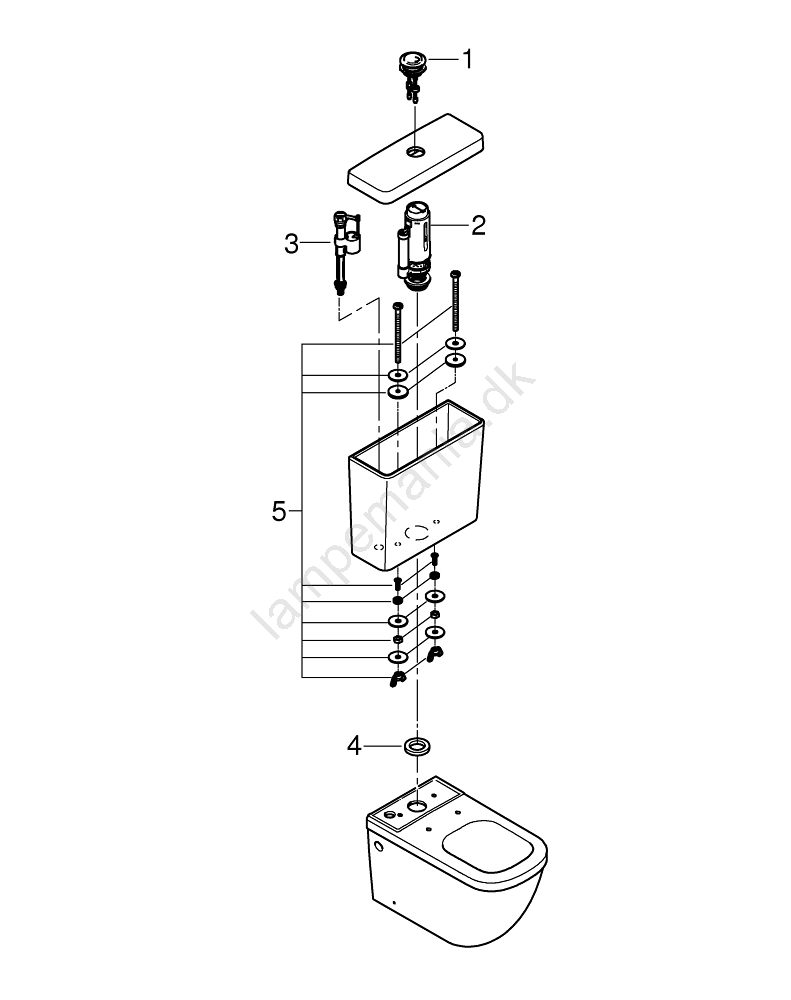 • Indeholder skylleudstyr med dobbeltskyl for vandbesparelse.