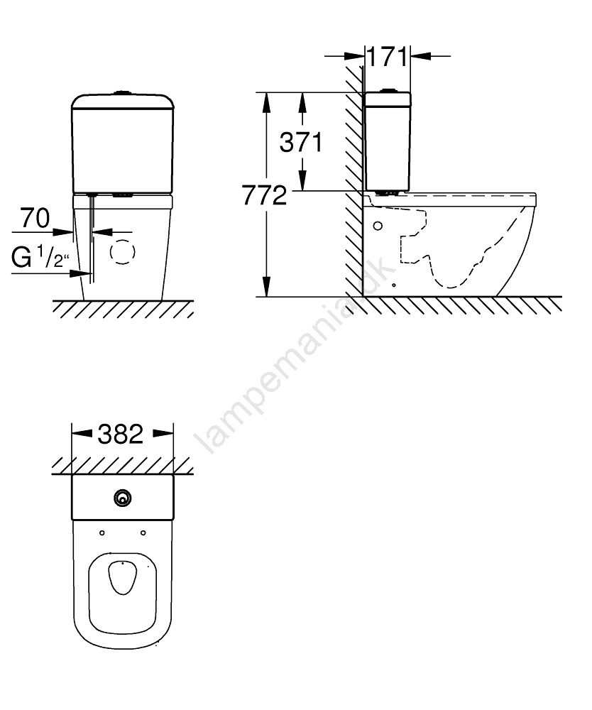 • Ideel i kombination med todelt gulvstående WC GROHE Euro Ceramic (39338000 a 3933800H).