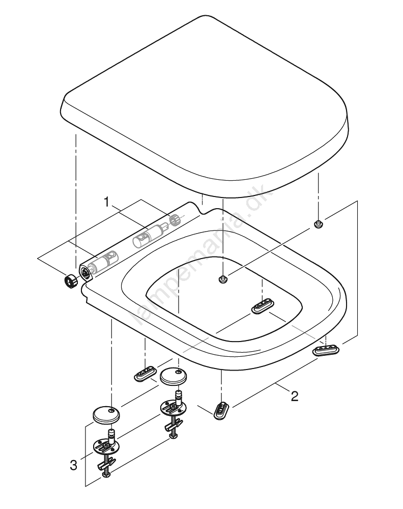 • Medfølgende monteringssæt til toiletskål, cisterne og toiletbræt.