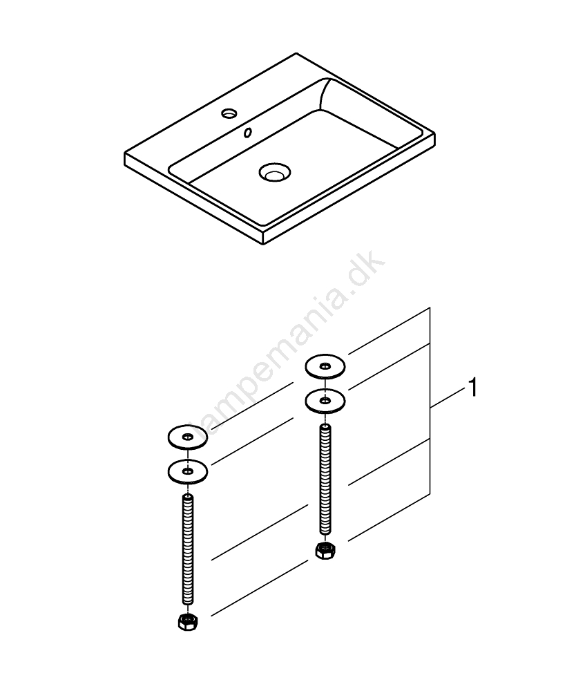 • Vasken er forsynet med ét forboret hul til armatur og to forberedte huller for fleksibilitet ved installation.