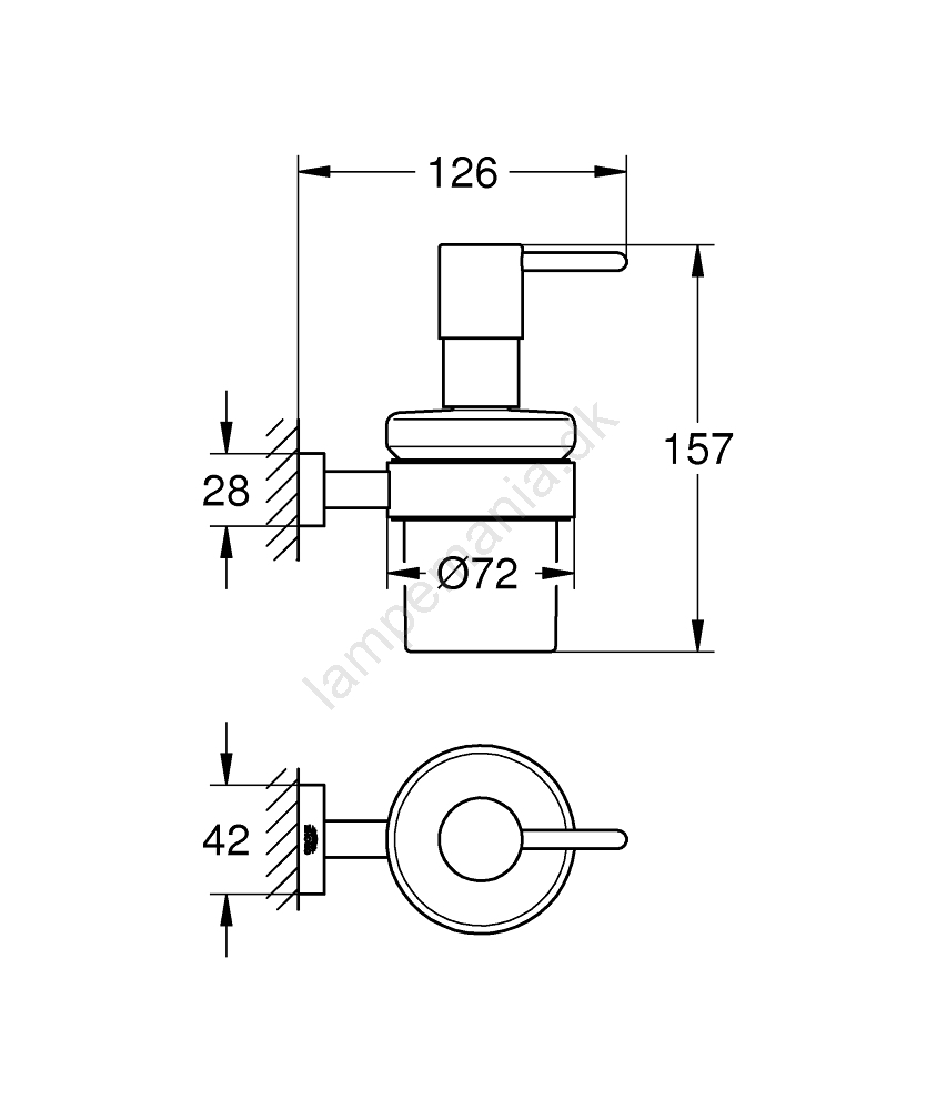 • Pakken indeholder holder (40 508 001) og sæbedispenser (40 394 001).