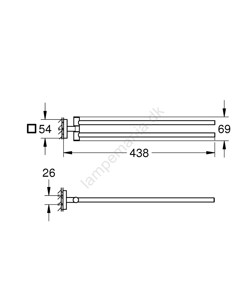• Længde 438 mm giver rigeligt plads til håndklæder.