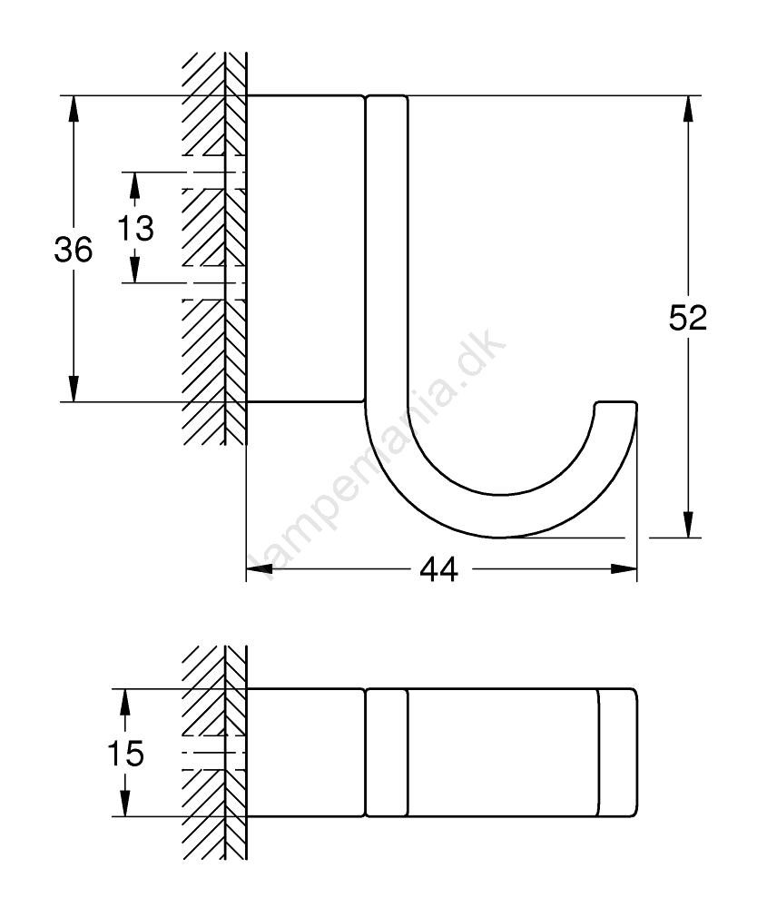 • Mål: bredde 15 mm, højde 52 mm, dybde 44 mm.