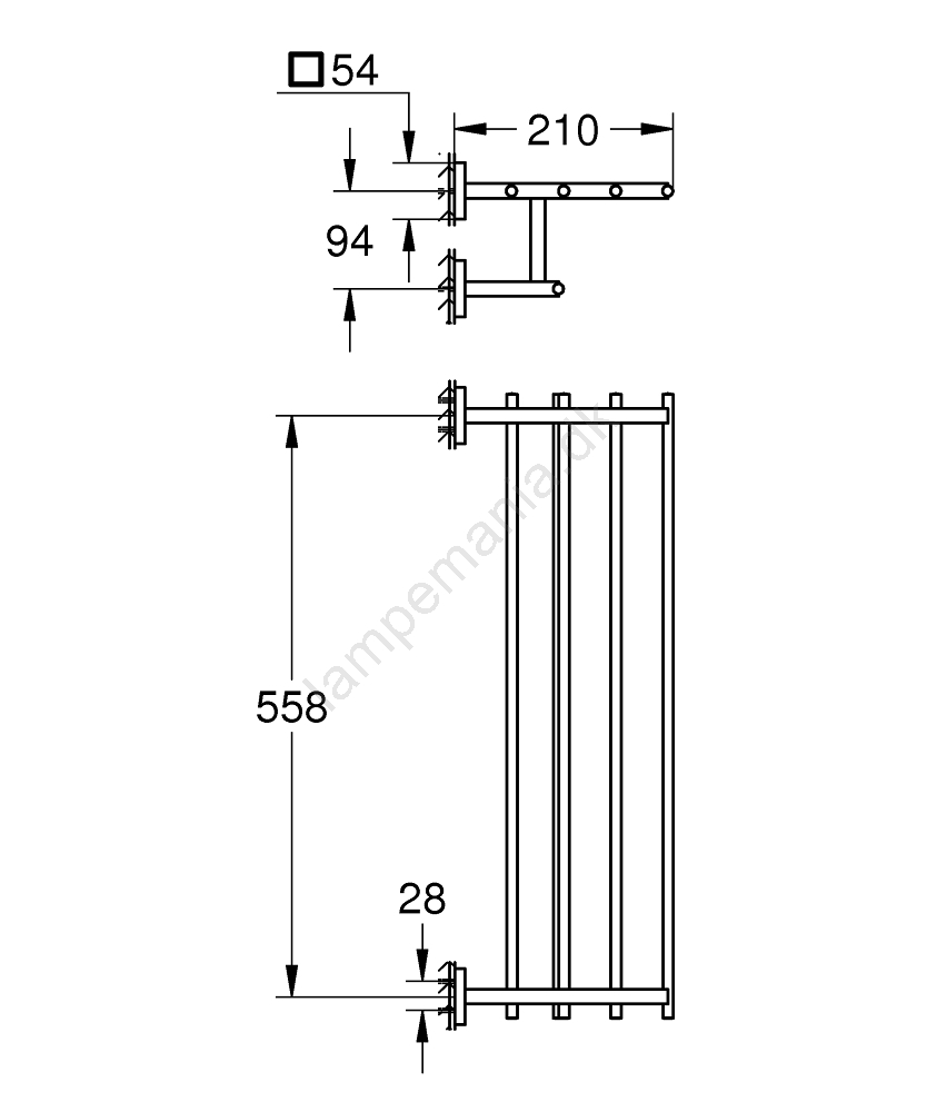 • Længde 600 mm med boreafstand 558 mm for nem installation.