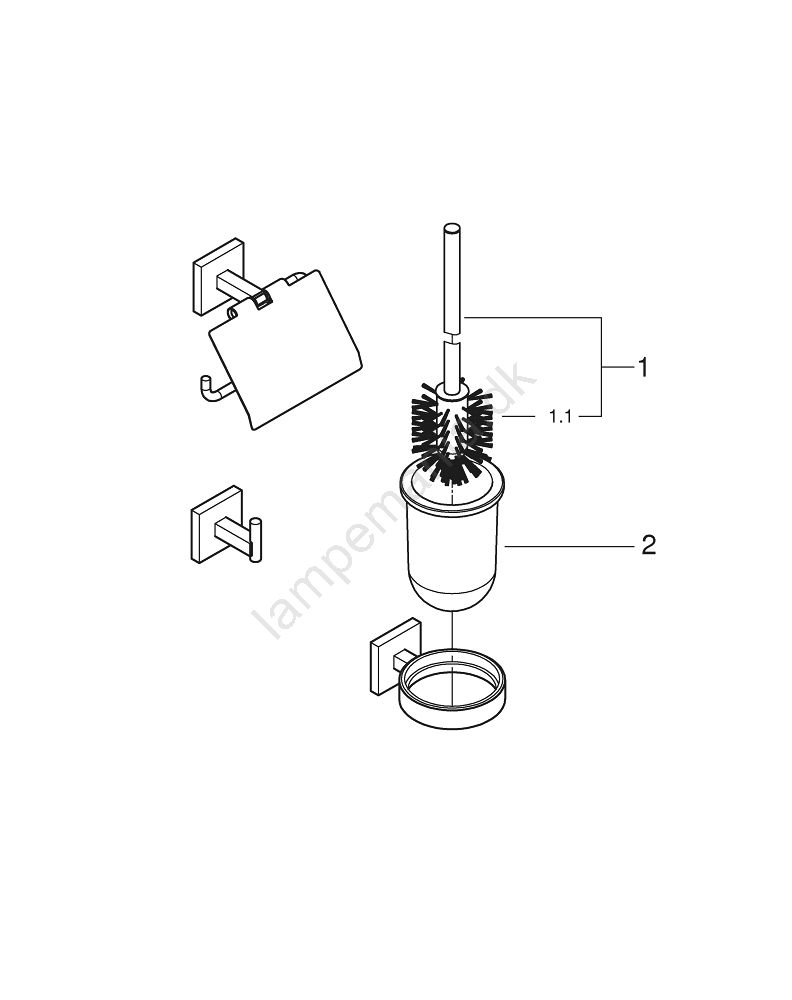 • Sættet indeholder en krog til badekåbe, en toiletpapirholder og en toiletbørste.
