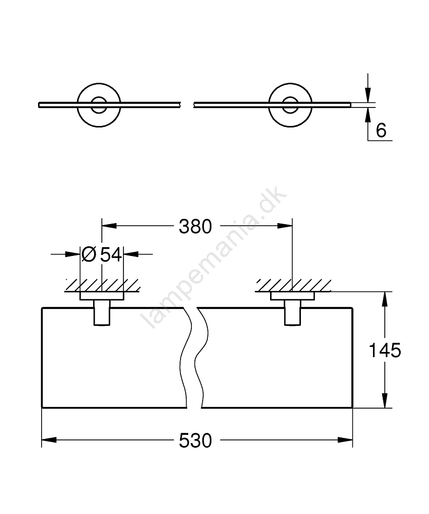 • Total længde 530 mm med en funktionel længde på 380 mm, der giver rigelig plads til dine badeværelsesartikler.