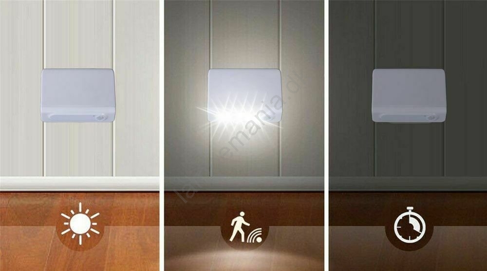 • Sensoren aktiveres automatisk i mørke og tænder, når du går forbi.