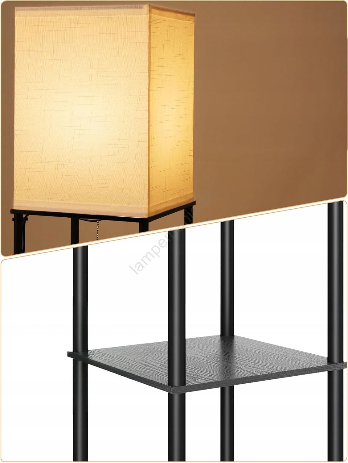 Gulvlampe med hylder 1xE27/40W/230V sort/hvid er kendetegnet ved et flot og funktionelt design.  En lyspære med E27-fatning passer til denne lampe. Her kan du købe andre pærer til fordelagtige priser. Du får en interessant tilføjelse til dit hjem.