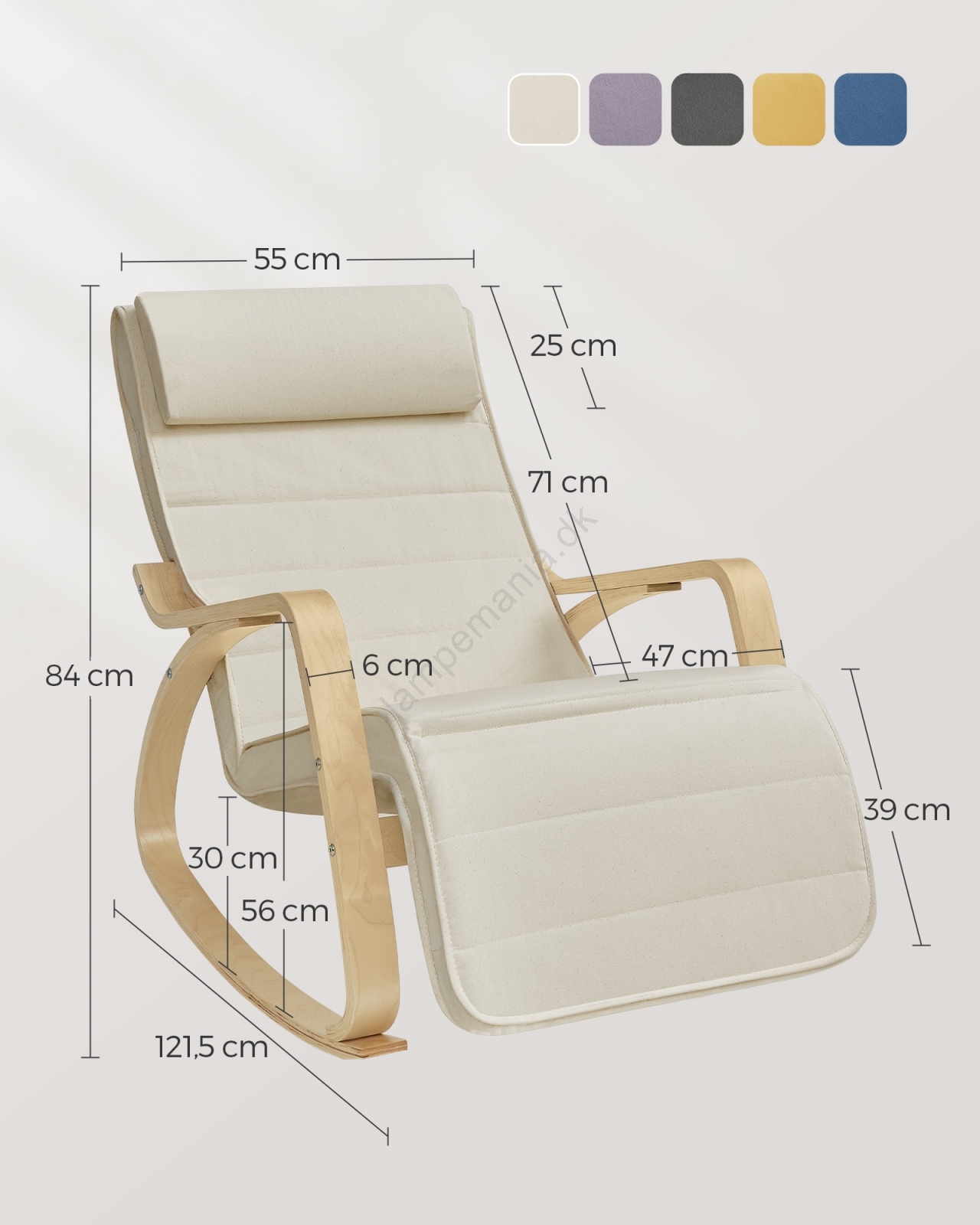 • Gyngestolen er fremstillet af holdbart, højkvalitets træ og 100% bomuld.
