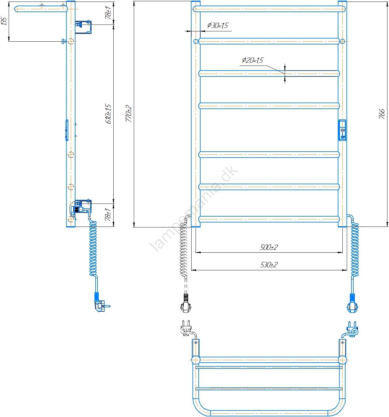 Håndklædevarmer til badeværelse HOME 95W/230V 77x53 cm, rustfrit stål/krom, højre