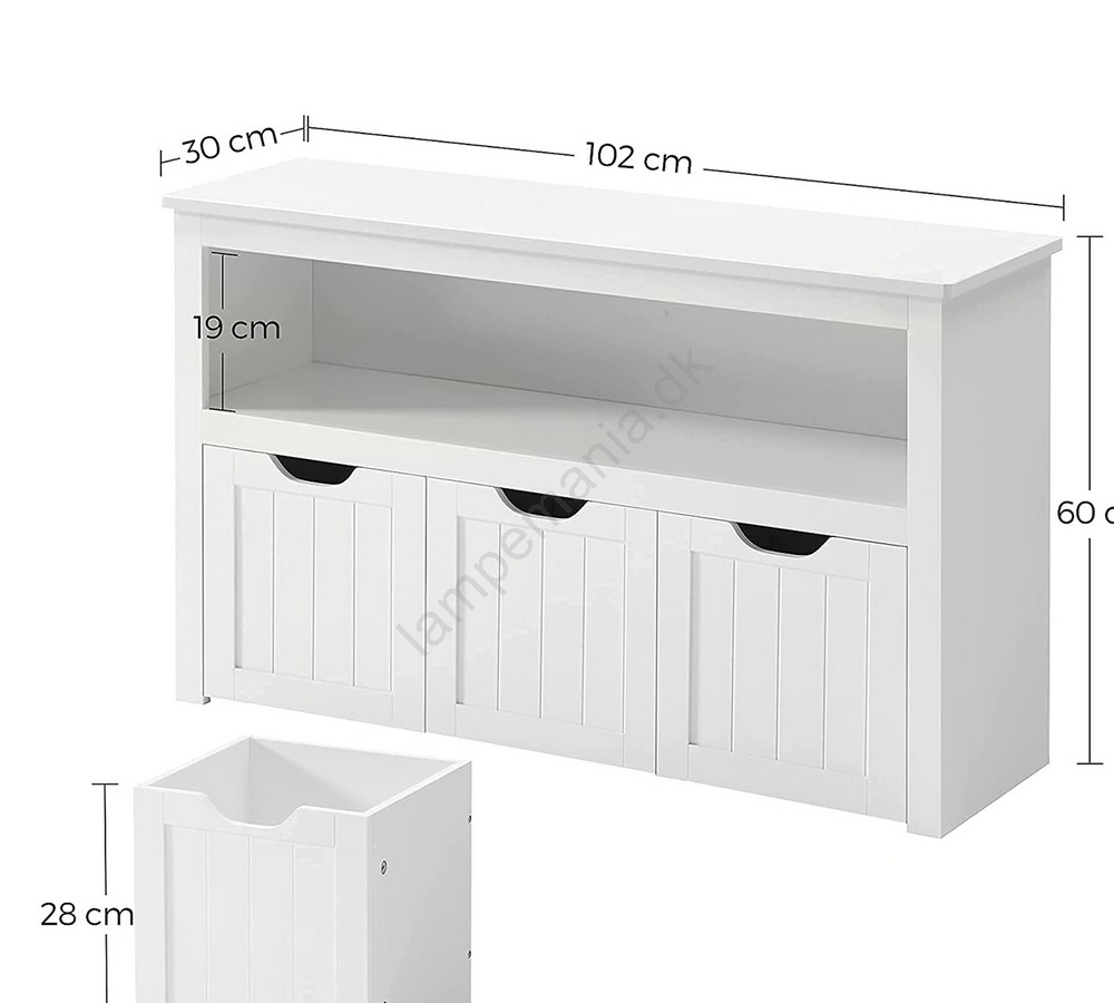 • Takket være det slanke design fylder det kun lidt på gulvet, samtidig med at det tilbyder rigelig opbevaringsplads.