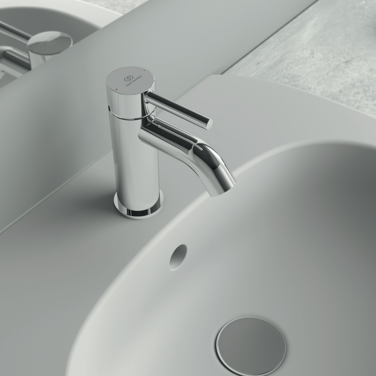 • Etgrebs-vaskarmatur Ideal Standard CeraLine er en bordsmonteret model med et utraditionelt design.