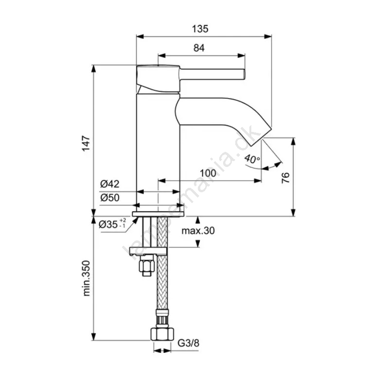 • Tilslutning sker med fleksible slanger i størrelsen G 3/8".