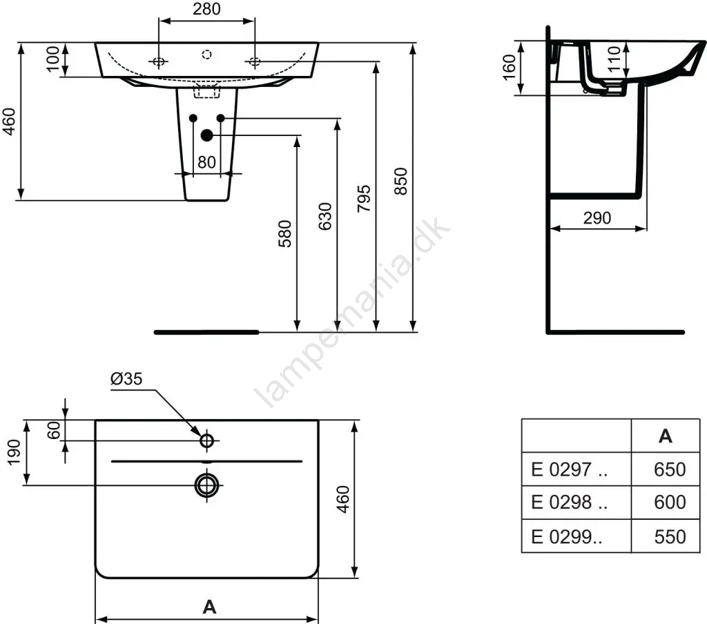 • Målene 600 x 460 x 160 mm giver rigelig plads til behagelig håndvask og tilfører samtidig et elegant præg til badeværelset.
