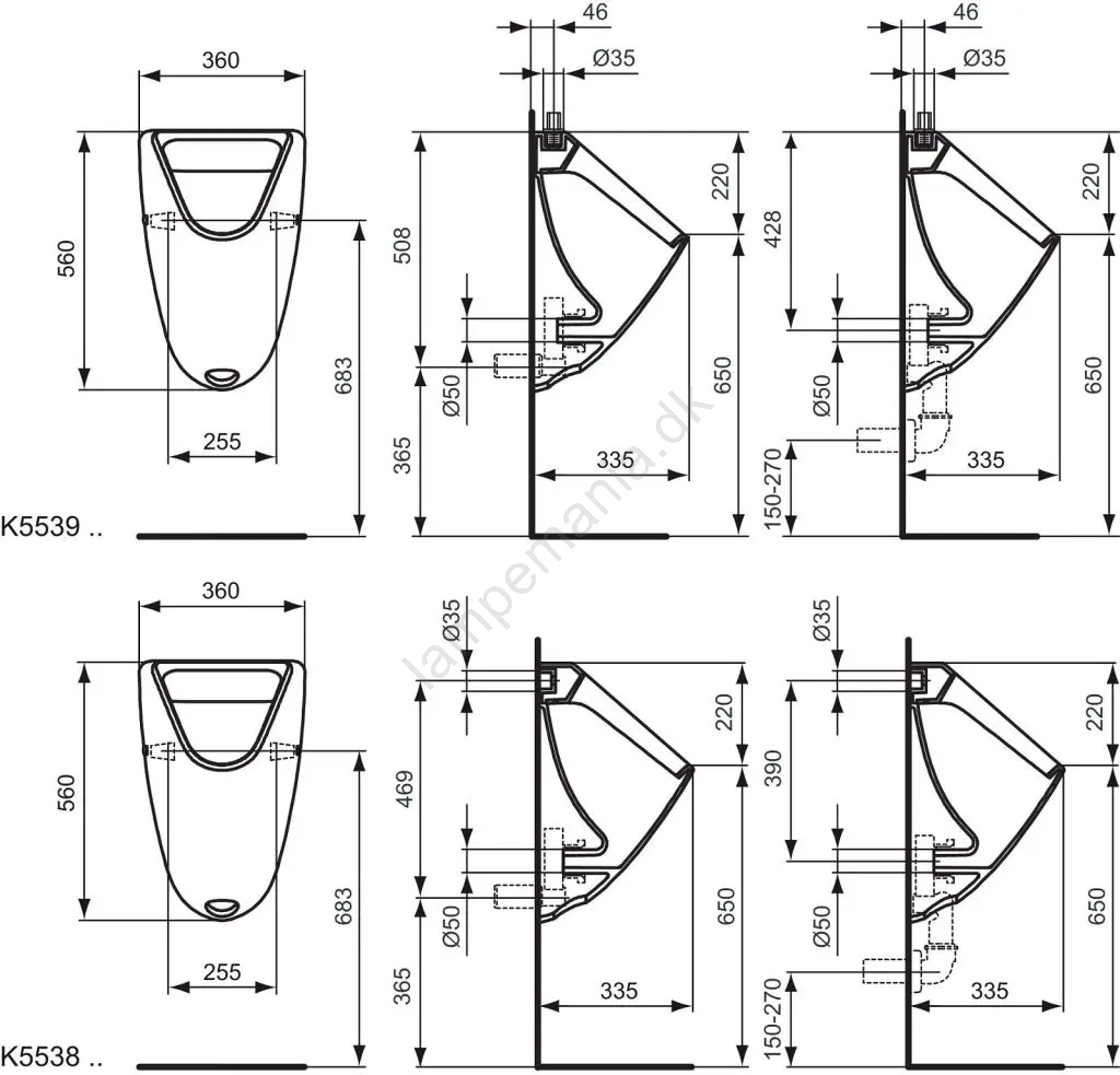 • Urinallet leveres med monteringssæt.