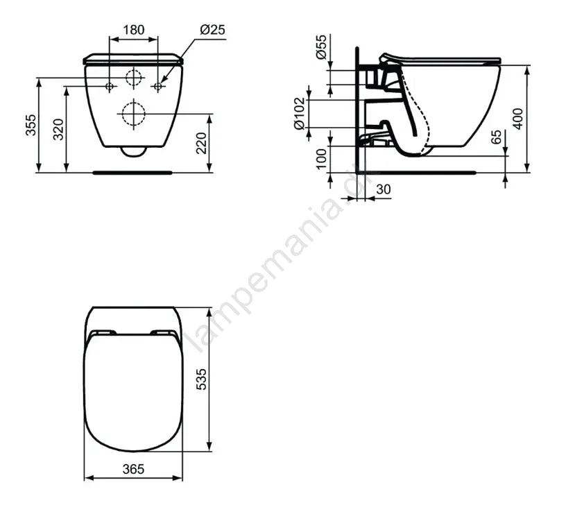 • Den er beregnet til installation med indbygget cisterne med skyllemængde fra 4,5 l, enten i væggen eller i en gipsvæg.
