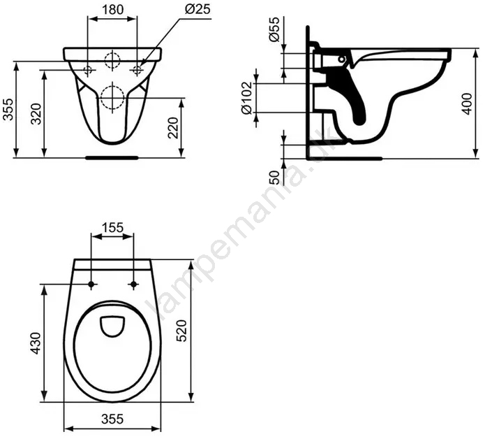 Ideal Standard W331301 - Væghængt toilet Rimless SIMPLICITY keramik/hvid