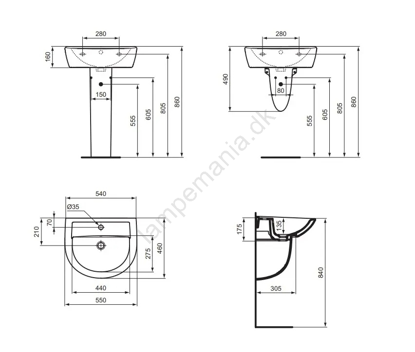 • Målene 550 x 460 x 160 mm giver rigelig plads til behagelig håndvask.