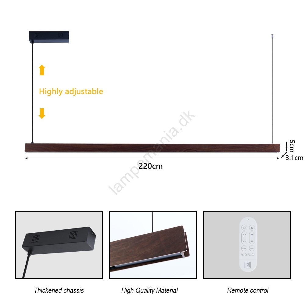 • Immax NEO 07302L - LED dæmpbar pendel på wire MADEIRA LED/44W/230V Wi‑Fi Tuya 202 cm valnød + fjernbetjening