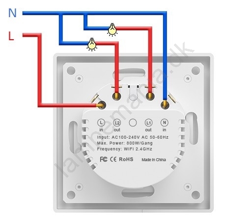 • Bemærk - denne berøringsafbryder med Wi-Fi kræver en neutralleder, altså den blå leder i afbryderens installationsdåse - "nulu".