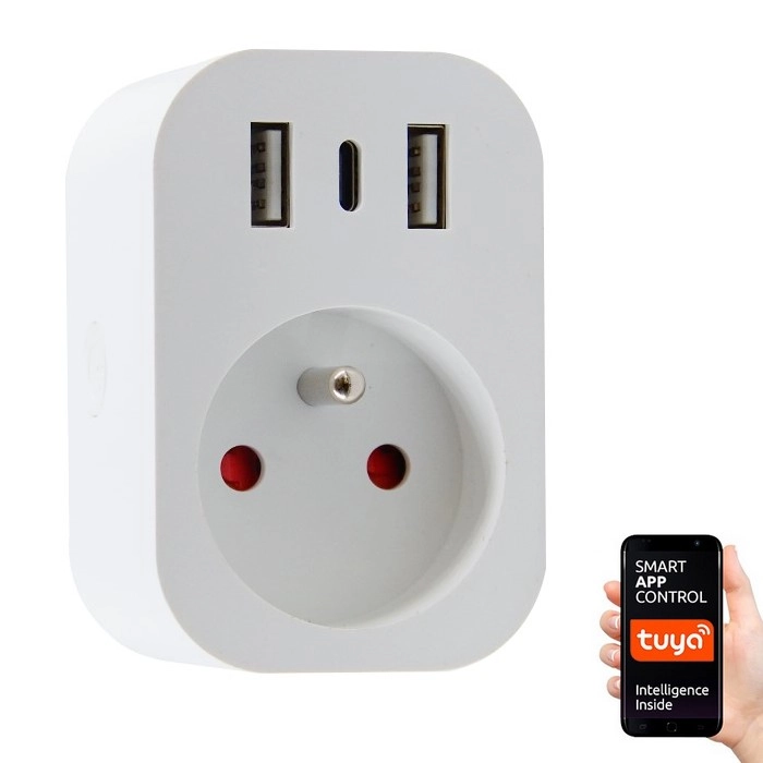Immax NEO 07772L - Smart stikdåse 16A/230V + 2xUSB+1xUSB C Wi-Fi Tuya