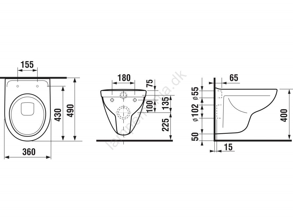 • Væghængt toilet.