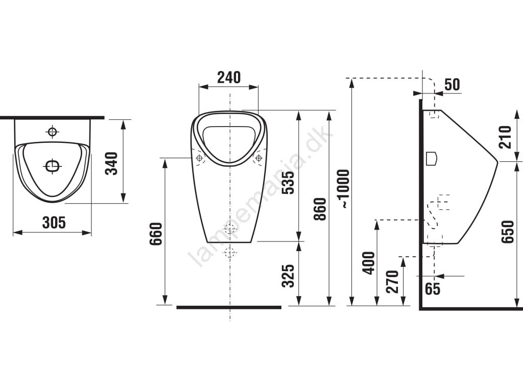 JIKA H8430610000001 - Urinal GOLEM, indvendig vandtilførsel, bagudgående afløb, keramik/hvid