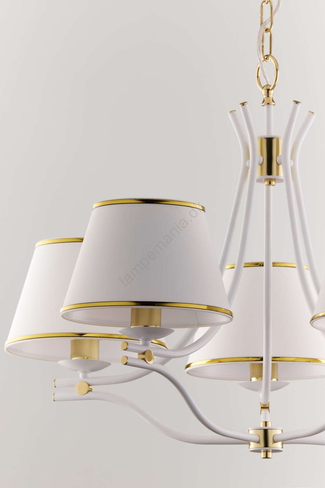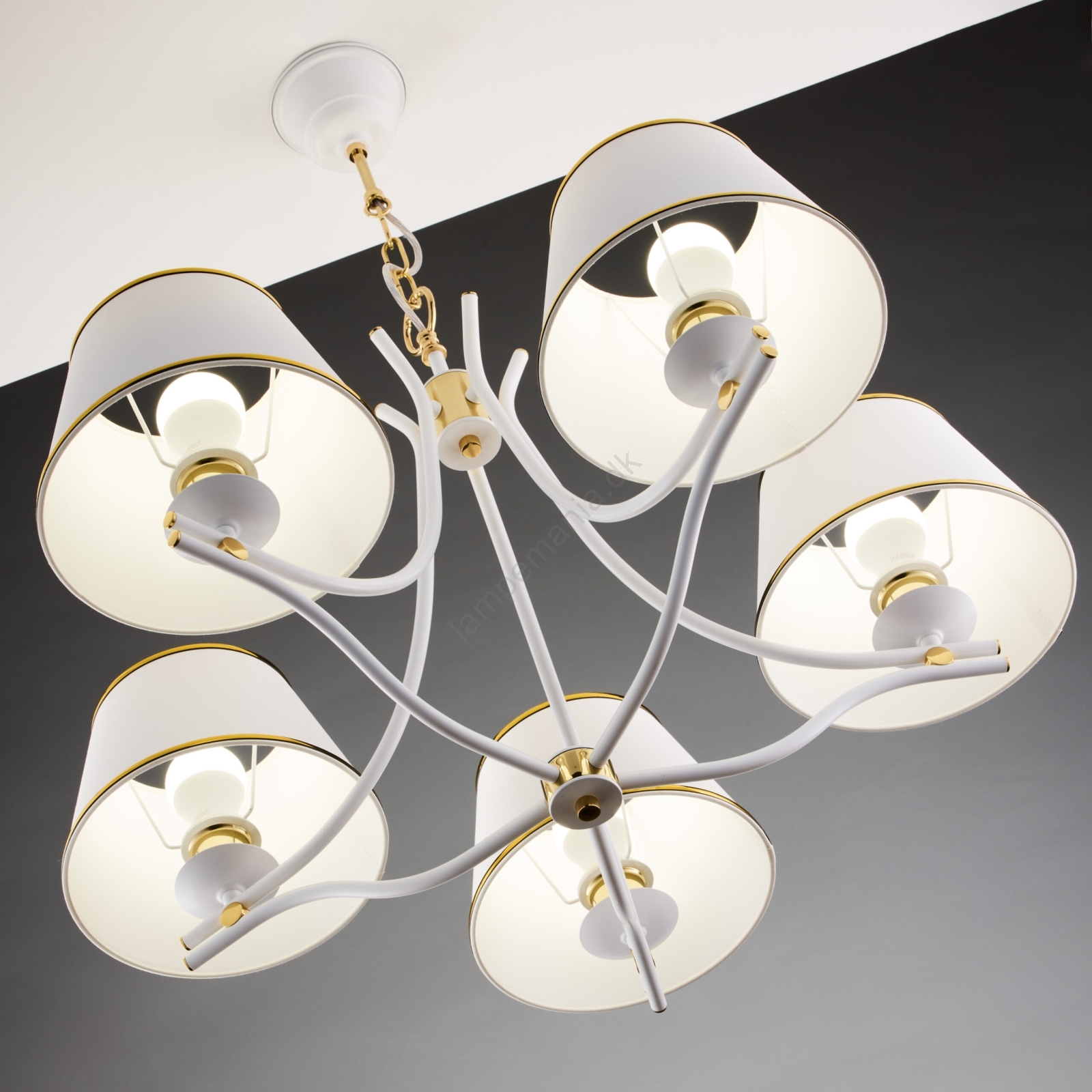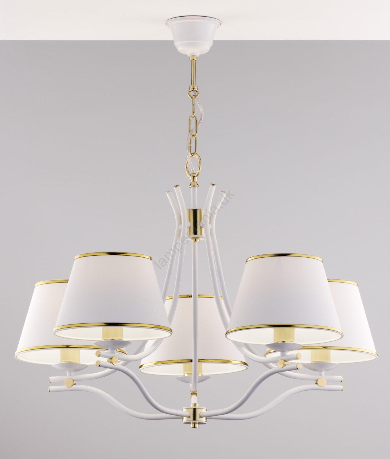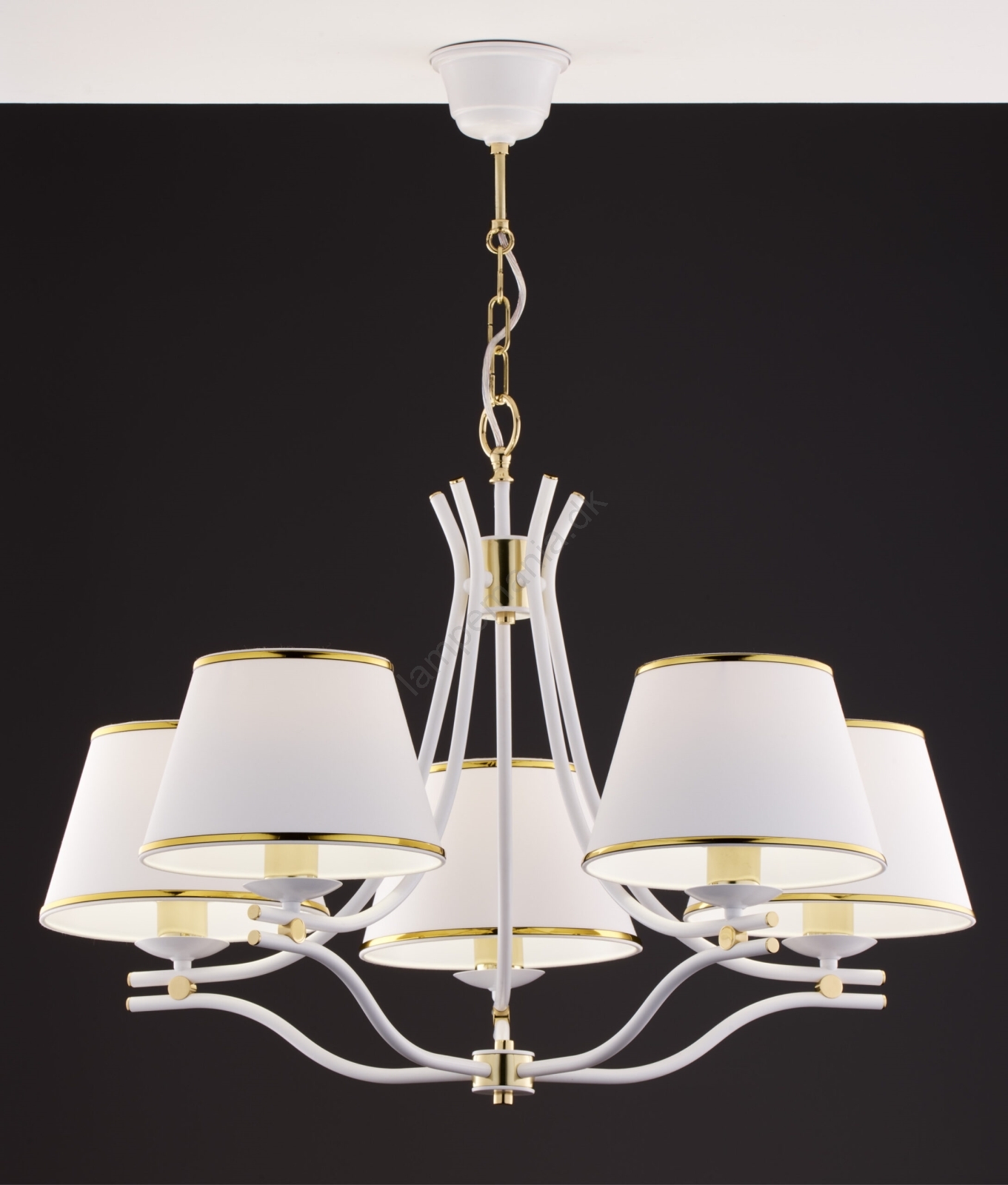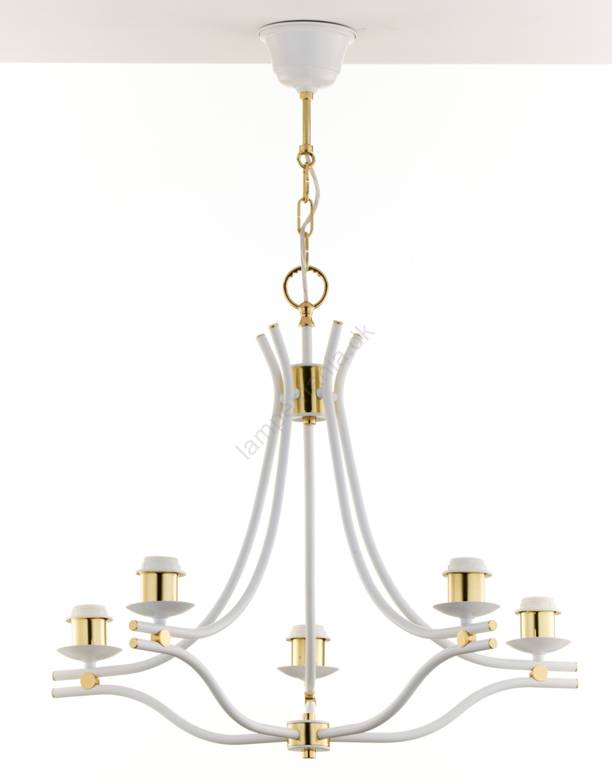 Jupiter 2084 - Lysekrone SAMBA med kæde 5xE27/15W/230V hvid/guld er kendetegnet ved et flot og funktionelt design.  En lyspære med E27-fatning passer til denne lampe. Her kan du købe andre pærer til fordelagtige priser. Du får en interessant tilføjelse til dit hjem.