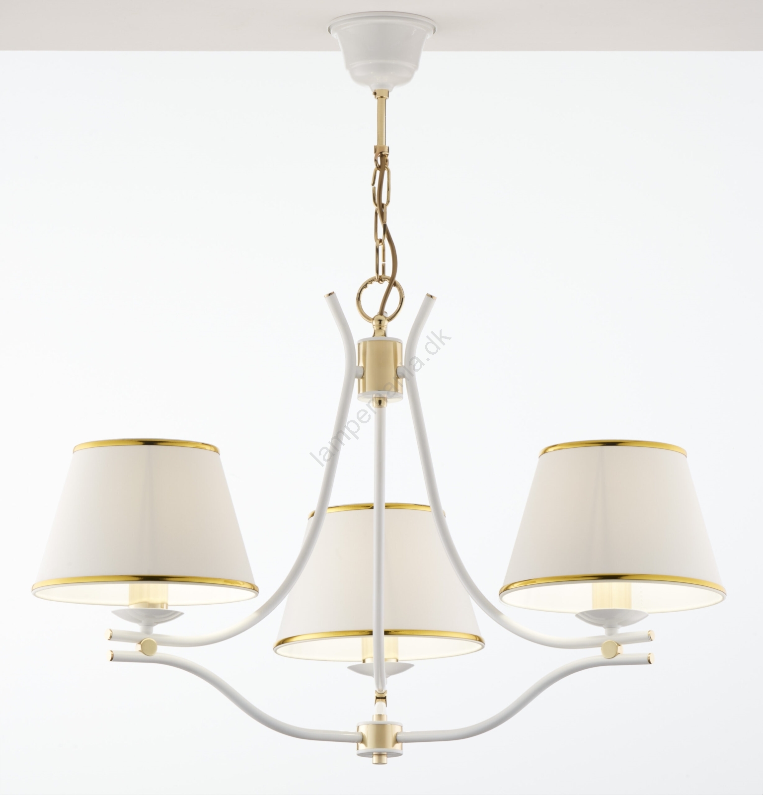 Jupiter 2085 - SAMBA lysekrone med kæde 3xE27/15W/230V hvid/guld er kendetegnet ved et flot og funktionelt design.  En lyspære med E27-fatning passer til denne lampe. Her kan du købe andre pærer til fordelagtige priser. Du får en interessant tilføjelse til dit hjem.