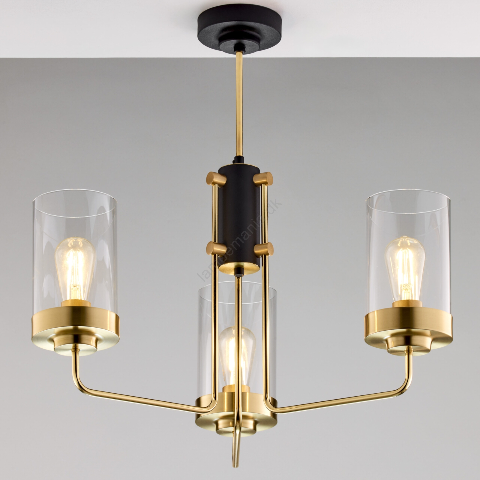 Jupiter 2087 - Lysekrone på stang RAMIREZ 3xE27/15W/230V guld/sort er kendetegnet ved et flot og funktionelt design.  En lyspære med E27-fatning passer til denne lampe. Her kan du købe andre pærer til fordelagtige priser. Du får en interessant tilføjelse til dit hjem.