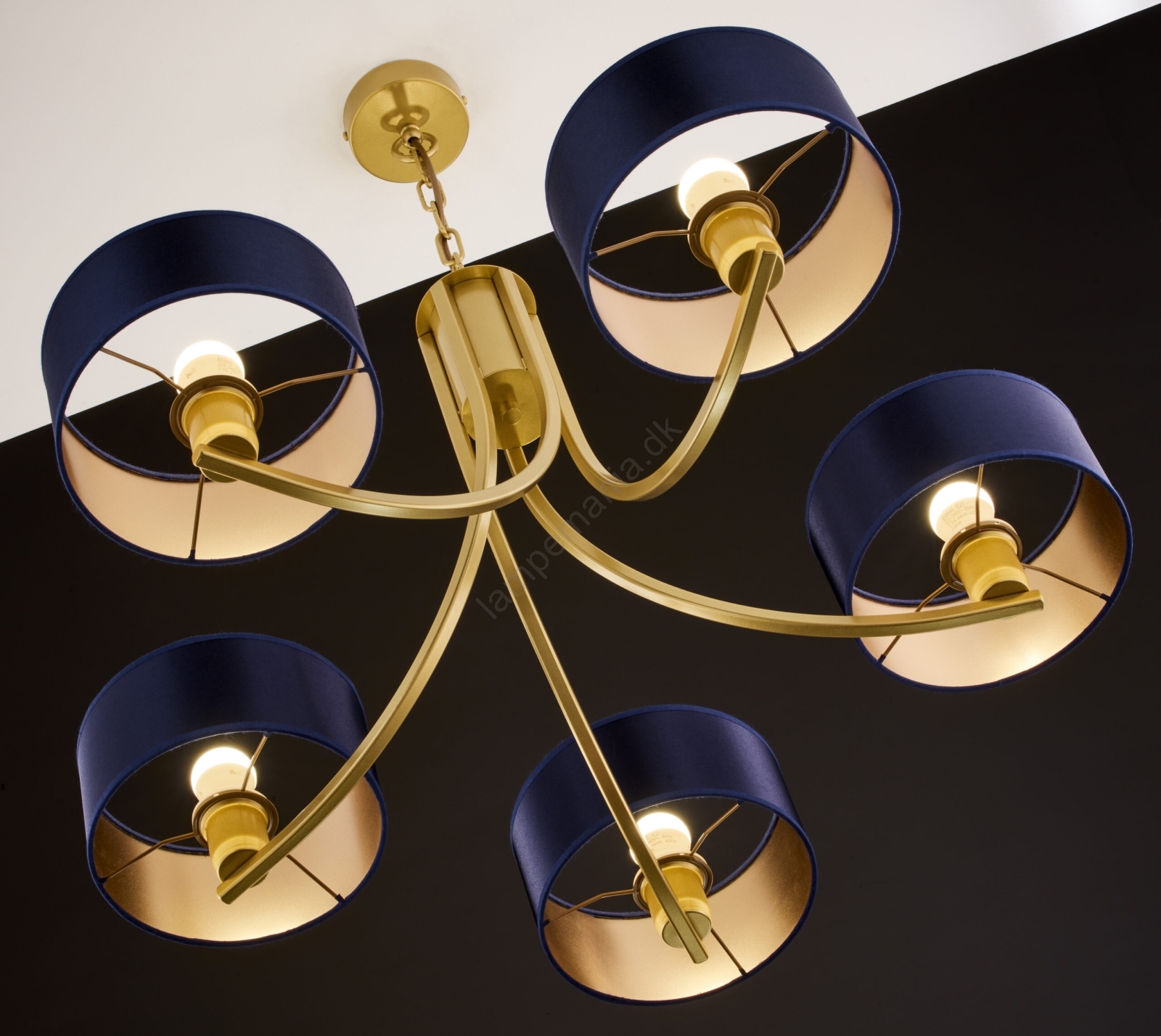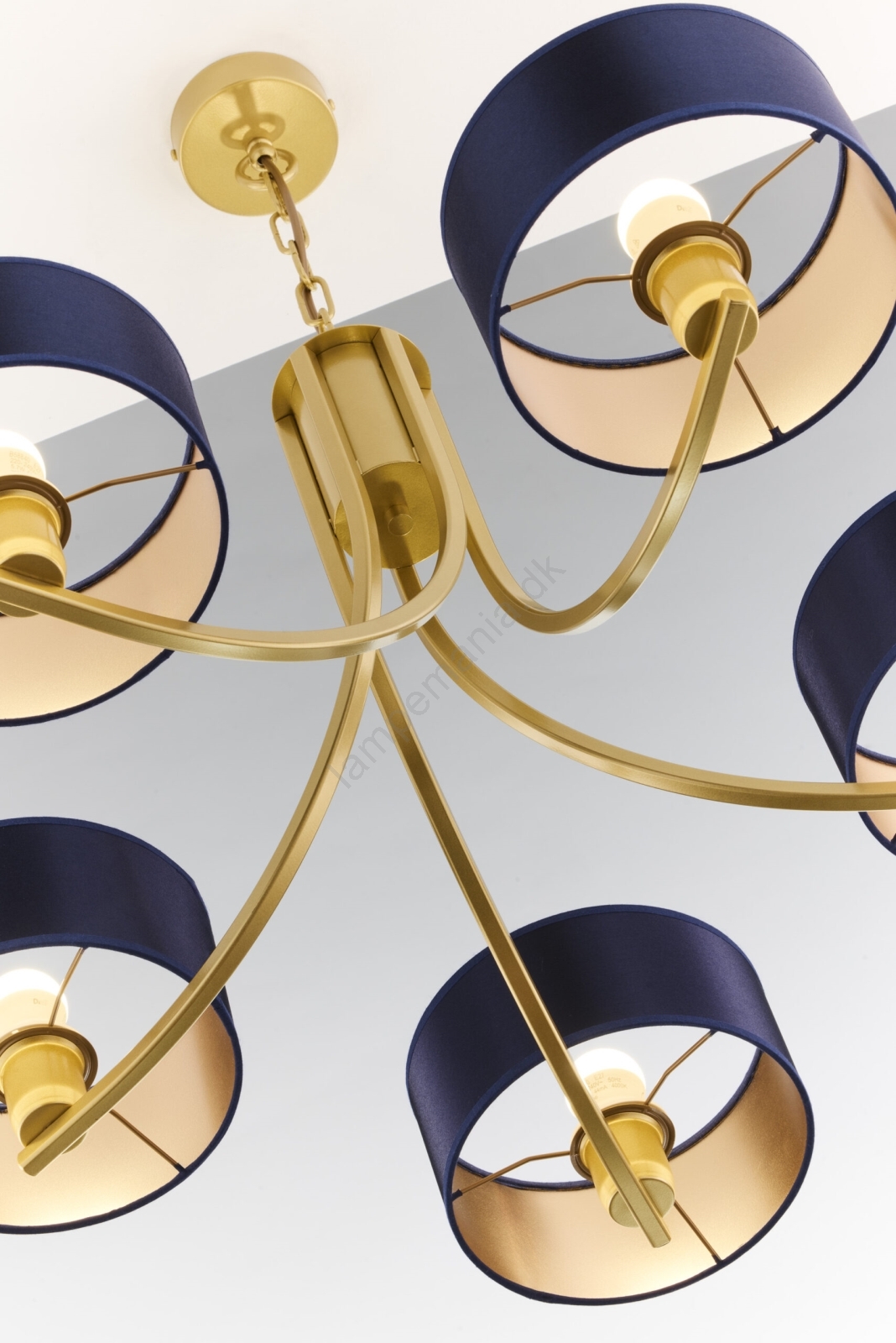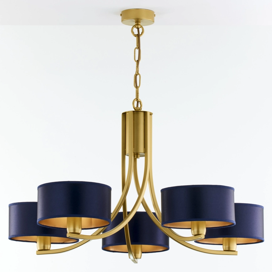 Jupiter 2094 - Lysekrone med kæde ARTHUR 5xE27/15W/230V blå/guld er kendetegnet ved et flot og funktionelt design.  En lyspære med E27-fatning passer til denne lampe. Her kan du købe andre pærer til fordelagtige priser. Du får en interessant tilføjelse til dit hjem.