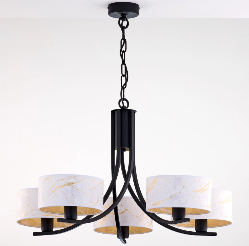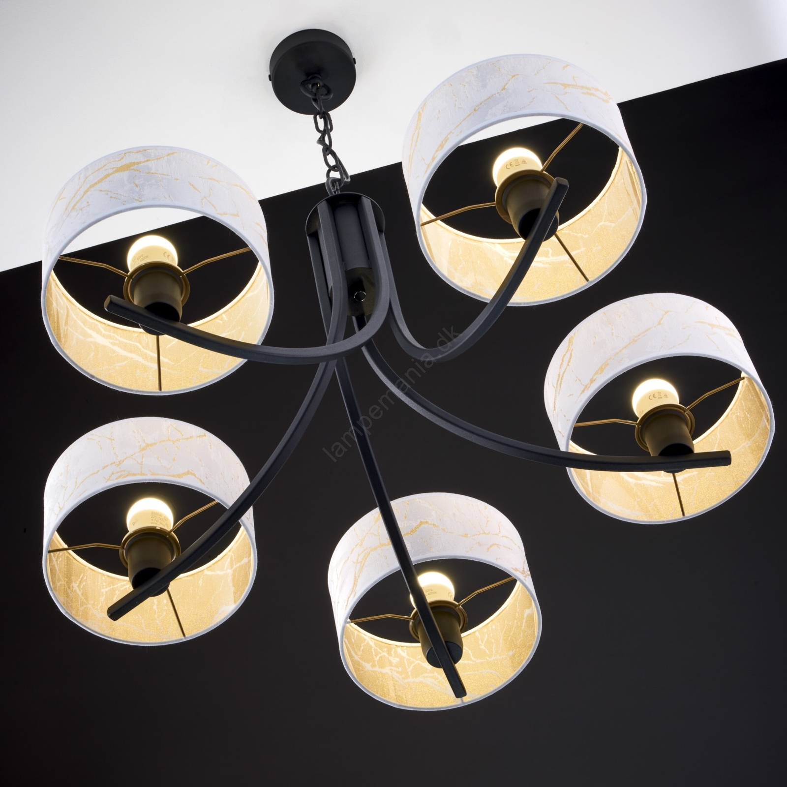 • Jupiter 2104 - Kædeophængt lysekrone ARTHUR 5xE27/15W/230V, hvid/sort med marmordekor
