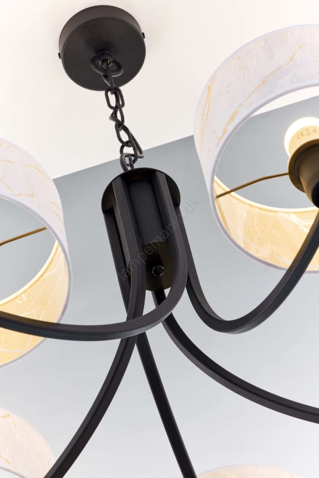 Jupiter 2104 - Kædeophængt lysekrone ARTHUR 5xE27/15W/230V, hvid/sort med marmordekor er kendetegnet ved et flot og funktionelt design.  En lyspære med E27-fatning passer til denne lampe. Her kan du købe andre pærer til fordelagtige priser. Du får en interessant tilføjelse til dit hjem.