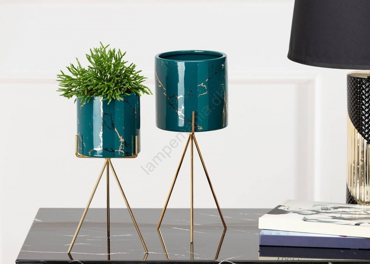 Keramisk blomsterkrukke EMMA 32,5x13 cm grøn/guldfarvet