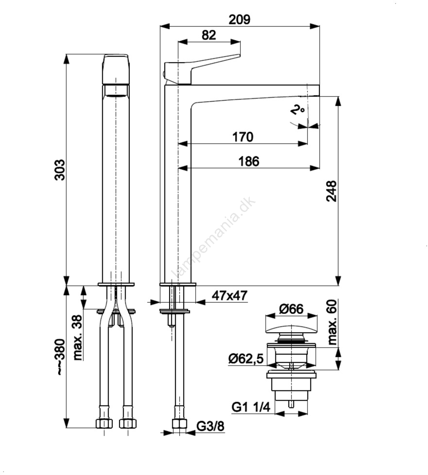 • Betjeningsmekanisme: keramisk patron 28 mm.